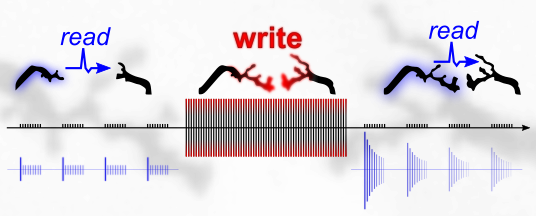 Abstract: Iono-electronic materials and devices are suscitating lots of interest from both bio-electronics and neuromorphic research communities. In the one hand, iono-electronic materials are offering attractive features such as bio-compatibility, water environme nt operation and efficient ionic to electronic signals transduction. In the other hand, functional devices based on such materials (organic electrochemical transistors, for instance) have shown multiple neuromorphic features from synaptic plasticity to d endritic integration. This talk will present how electropolymerization of PEDOT:PSS materials can be used in both a bio-electronic and a neuromorphic perspective. Electropolymerization of OECT sensors can indeed be advantageously used for optimizing / tu ning the iono-electronic responses of organic electrochemical transistors, thus paving the way to plastic electrophysiological sensors. Notably, we will show how transconductance and volumetric capacitance are evolving with potenstiostatic electropolymer ization. Secondly, bipolar AC electropolymerization can be used to engineer dendritic-like fibers of PEDOT:PSS. Such unconventional structures can implement various neuromorphic concept such as structural plasticity and synaptic plasticity. Finally, comp uting task taking advantage of both electropolymerized sensors and neuromorphic computing will present temporal patterns classification with reservoir computing approach.